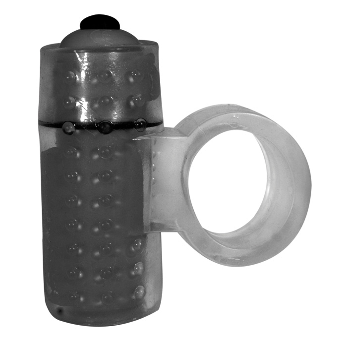 Size doesn’t matter, but vibrations do! Clear, stretchable, reusable silicone ring with 1 speed bullet vibe (2” length). Different textures on each side of the ring allow partner to experience different sensations. Includes two sets of batteries. Phthalate free. Removable bullet. Washable ring.