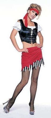 5 Piece Pirate Costume set includes pirate peasant top, pirate corset, pirate skirt, pirate bandanna and pirate eye patch. Leg Avenue