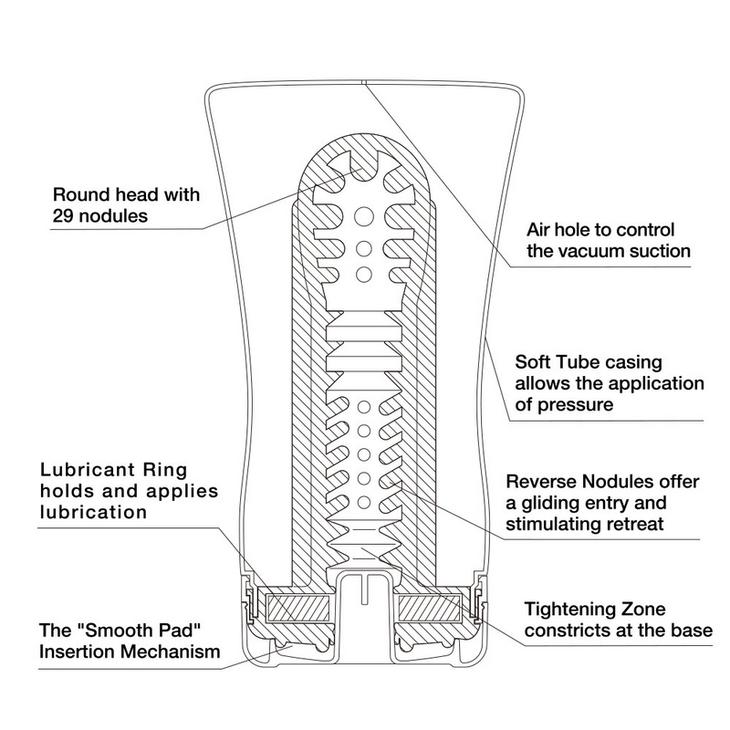 The Soft Tube CUP allows you to manipulate the pressure during use! The sensation you desire, controlled on your whim. Squeeze, release, knead and stroke for various sensations!